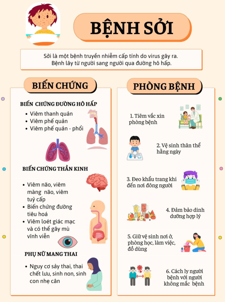 Bệnh Sởi có thể gây ra nhiều biến chứng nguy hiểm như viêm phổi, viêm não, suy dinh dưỡng nếu không được chăm sóc đúng cách.