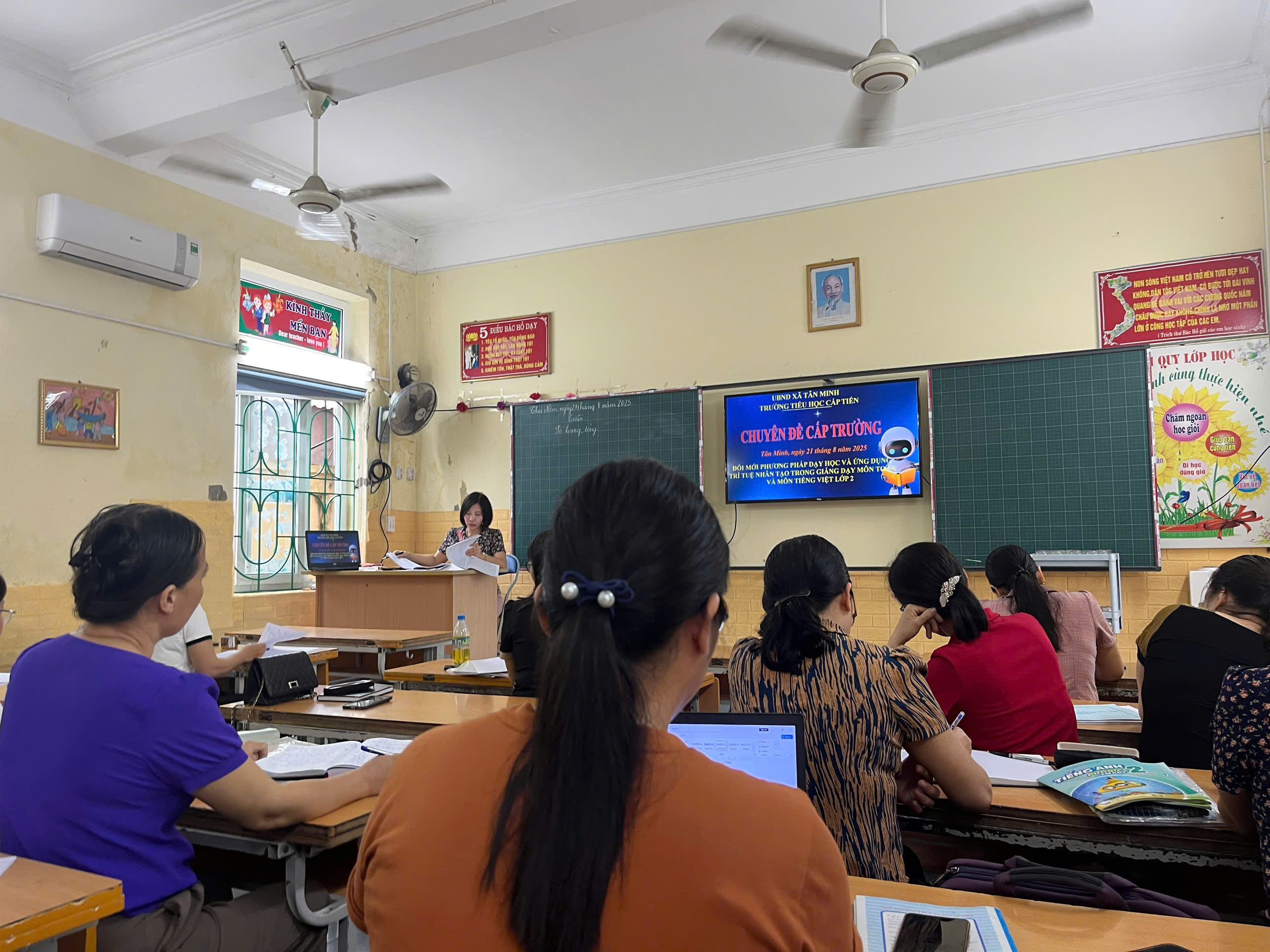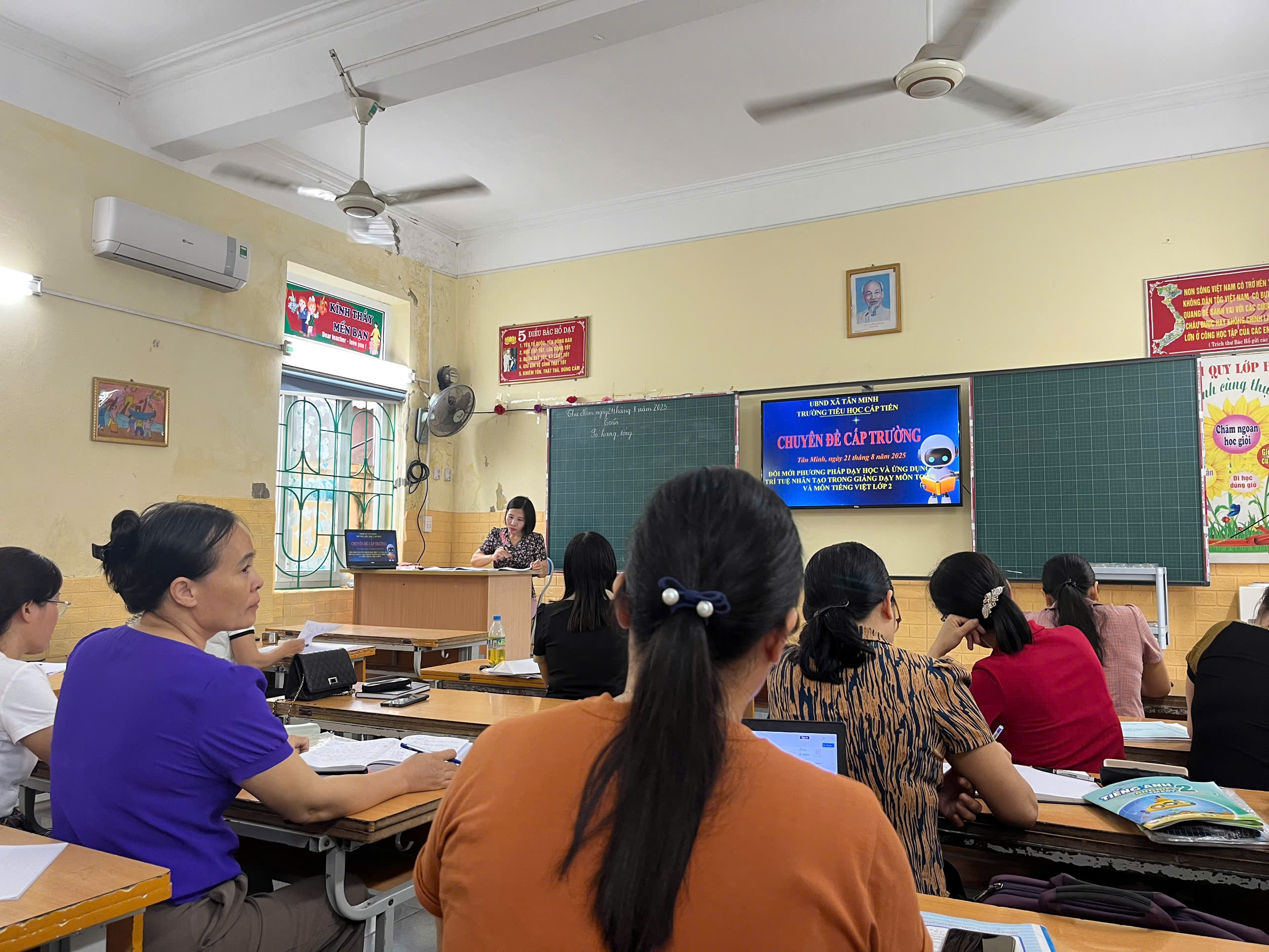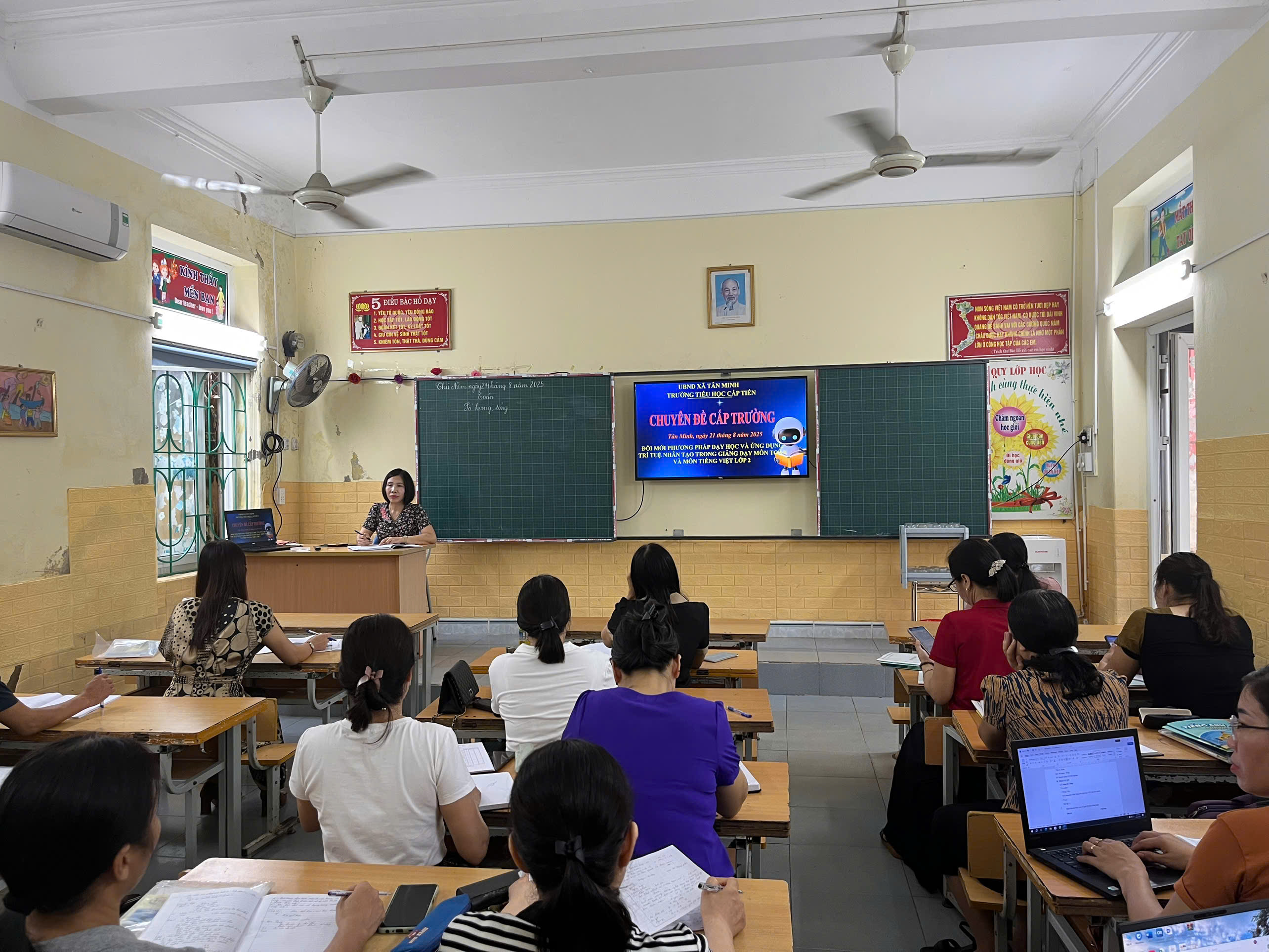 Thực hiện kế hoạch năm học 2025 – 2026, Trường Tiểu học Cấp Tiến tổ chức chuyên đề “Ứng dụng công nghệ AI trong dạy và học”. Đây là hoạt động thiết thực nhằm nâng cao chất lượng giáo dục, hỗ trợ giáo viên đổi mới phương pháp giảng dạy, tạo hứng thú và phát huy tính chủ động, sáng tạo của học sinh.