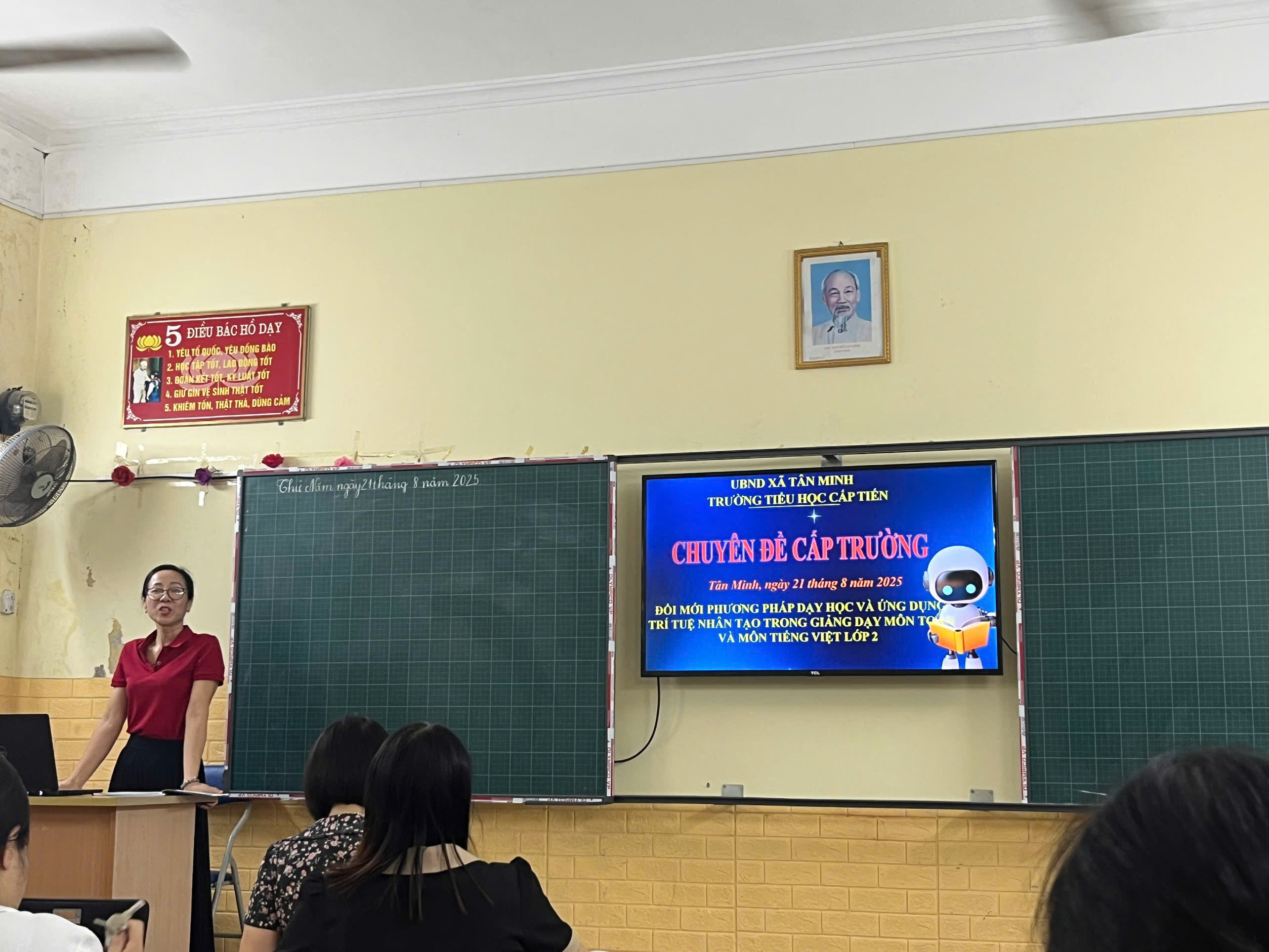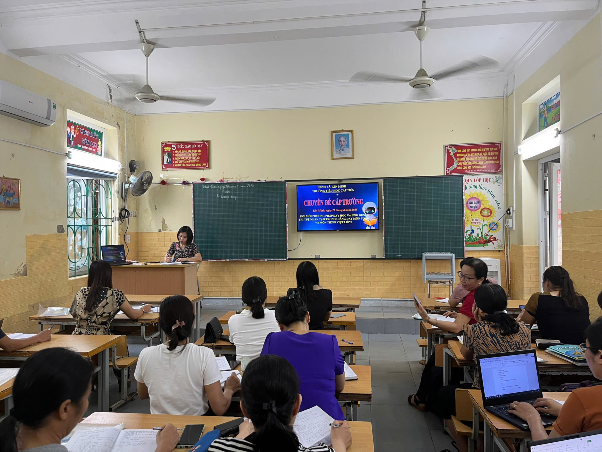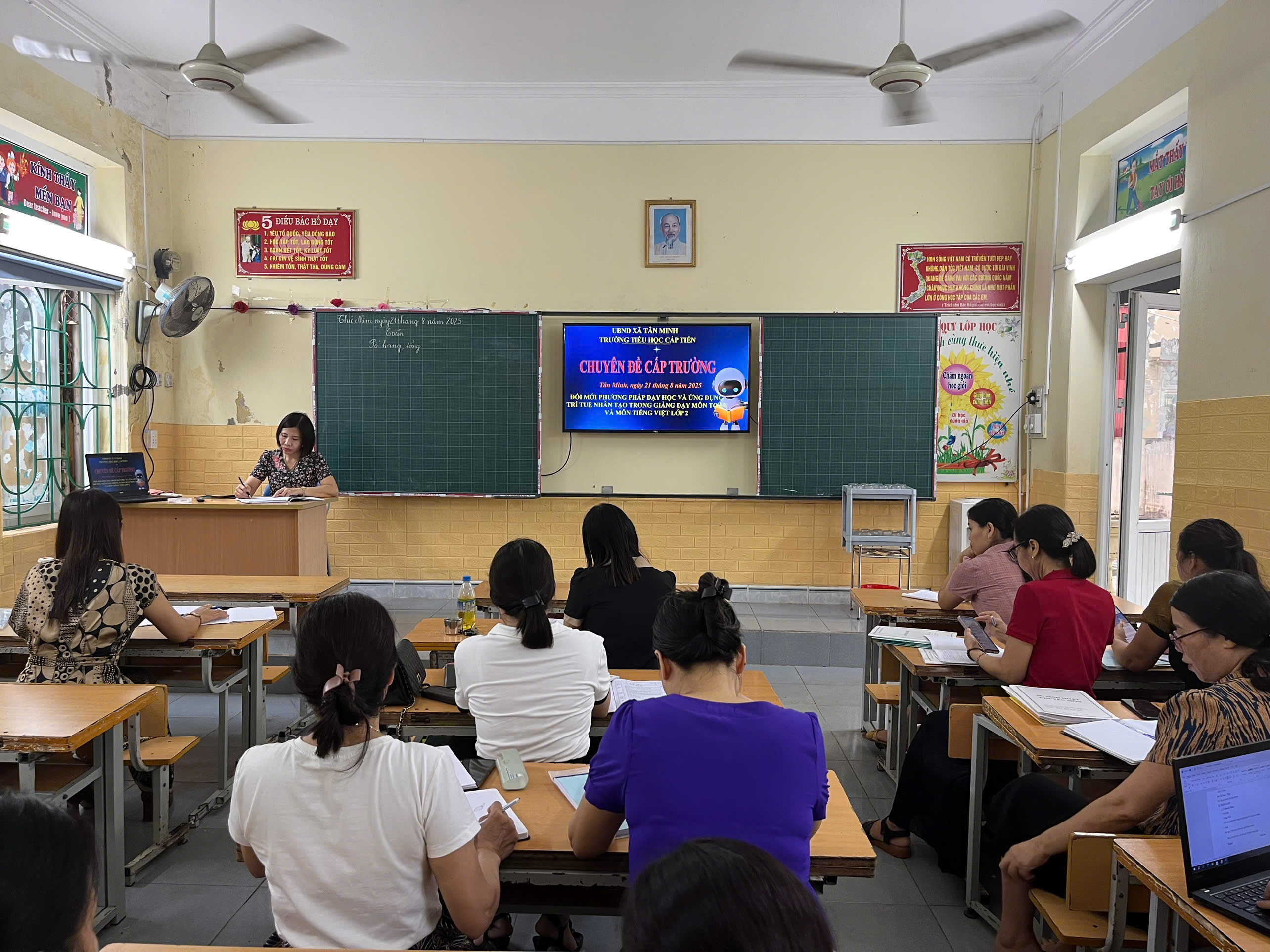 Thực hiện kế hoạch năm học 2025 – 2026, Trường Tiểu học Cấp Tiến tổ chức chuyên đề “Ứng dụng công nghệ AI trong dạy và học”. Đây là hoạt động thiết thực nhằm nâng cao chất lượng giáo dục, hỗ trợ giáo viên đổi mới phương pháp giảng dạy, tạo hứng thú và phát huy tính chủ động, sáng tạo của học sinh.