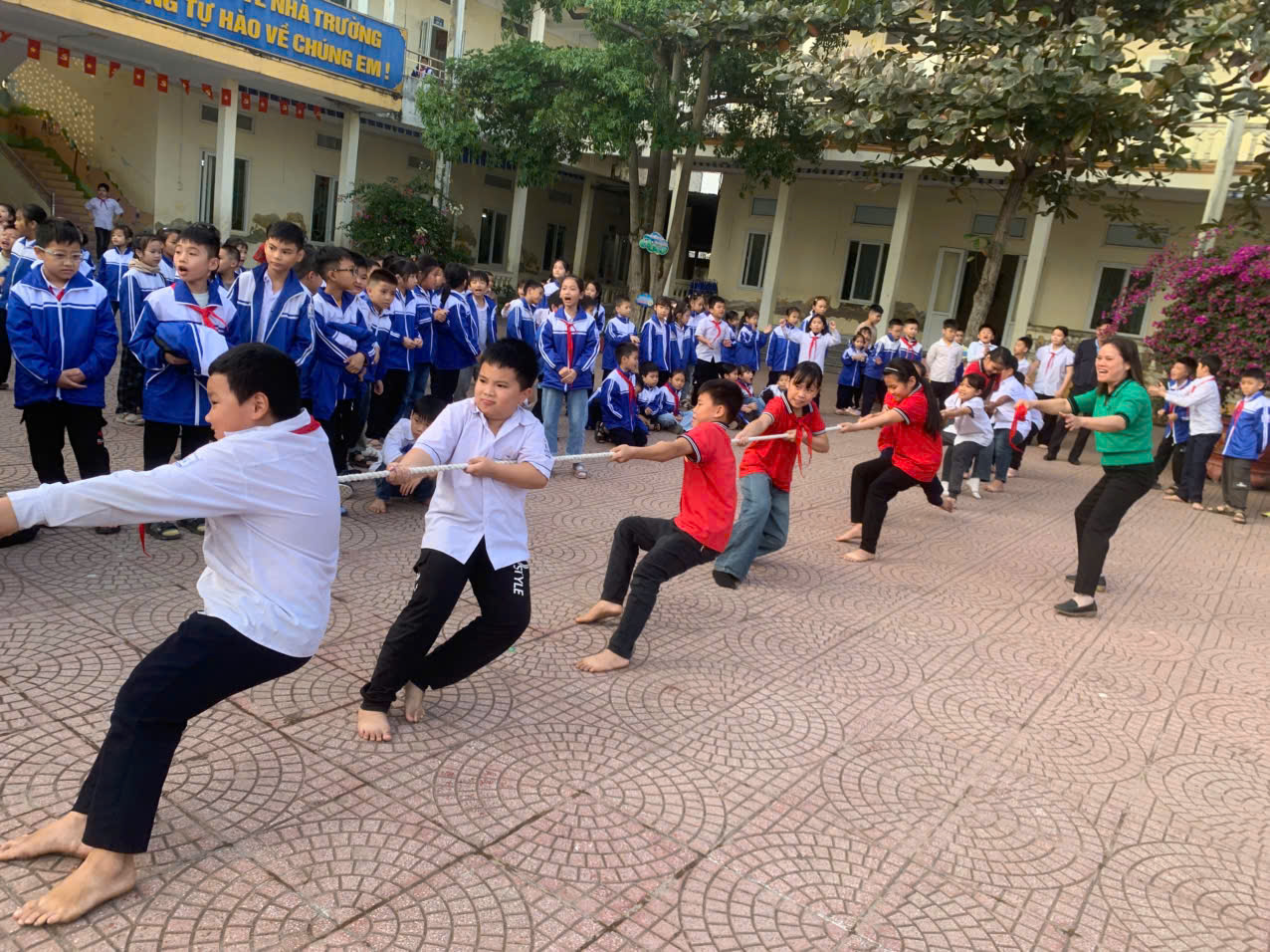 Ngay sau đó, không khí sân trường trở nên "nóng" hơn bao giờ hết với phần thi kéo co đầy kịch tính của các anh chị khối 4 và khối 5. Tiếng reo hò, cổ vũ không ngớt đã tiếp thêm sức mạnh cho các đội thi, thể hiện rõ tinh thần đồng đội và quyết tâm cao độ. Ngoài ra, các nội dung thi Đội hình đội ngũ và Nghi thức Đội cũng được tổ chức, thể hiện sự nghiêm túc và kỷ luật của các em.