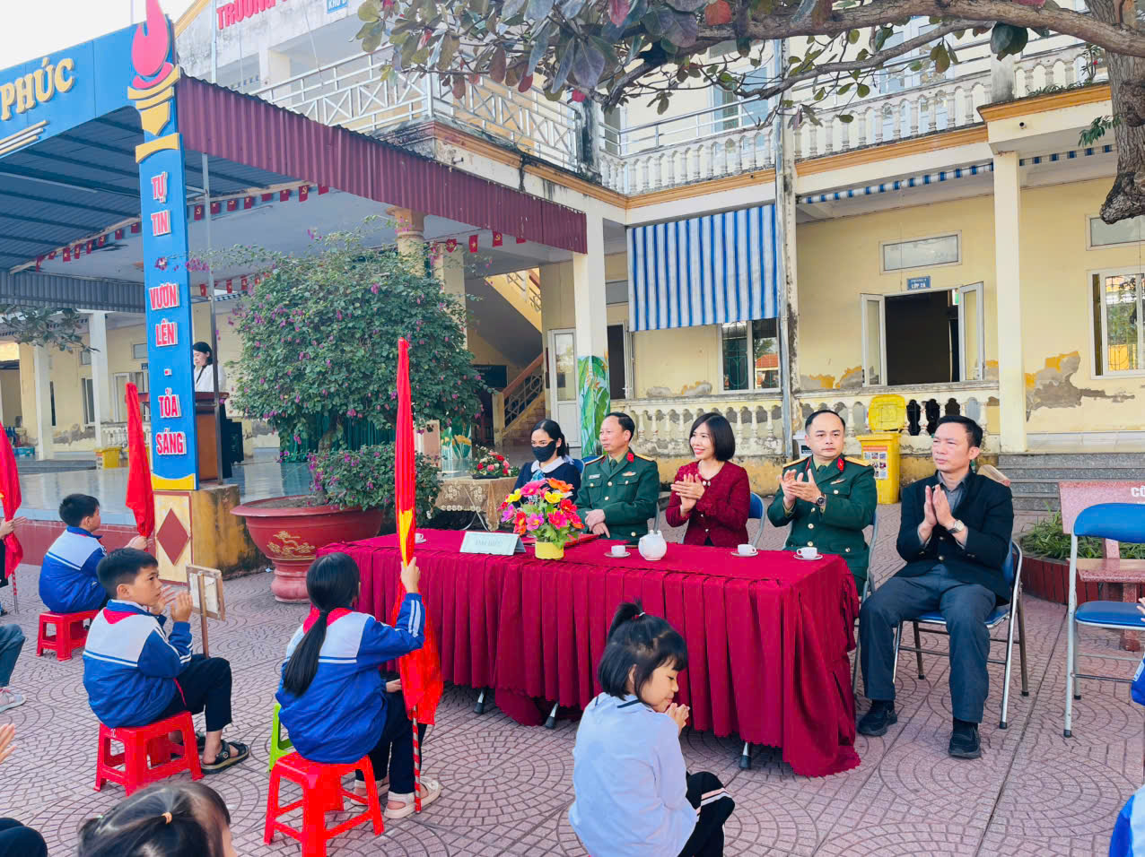 Đặc biệt, trong không khí trang trọng của buổi lễ, nhà trường vinh dự được đón tiếp Đại tá Nguyễn Văn Vạn - Phó Chính Ủy Đoàn Kinh tế Quốc Phòng 338. Đại tá đã có buổi nói chuyện, giao lưu đầy ý nghĩa với các em học sinh về truyền thống vẻ vang của "Anh Bộ đội Cụ Hồ". Những câu chuyện chân thực, hào hùng của ông đã giúp các em hiểu sâu sắc hơn về lịch sử dân tộc, khơi dậy lòng tự hào và biết ơn đối với thế hệ cha anh đi trước, tiếp thêm động lực để các em phấn đấu học tập và rèn luyện.