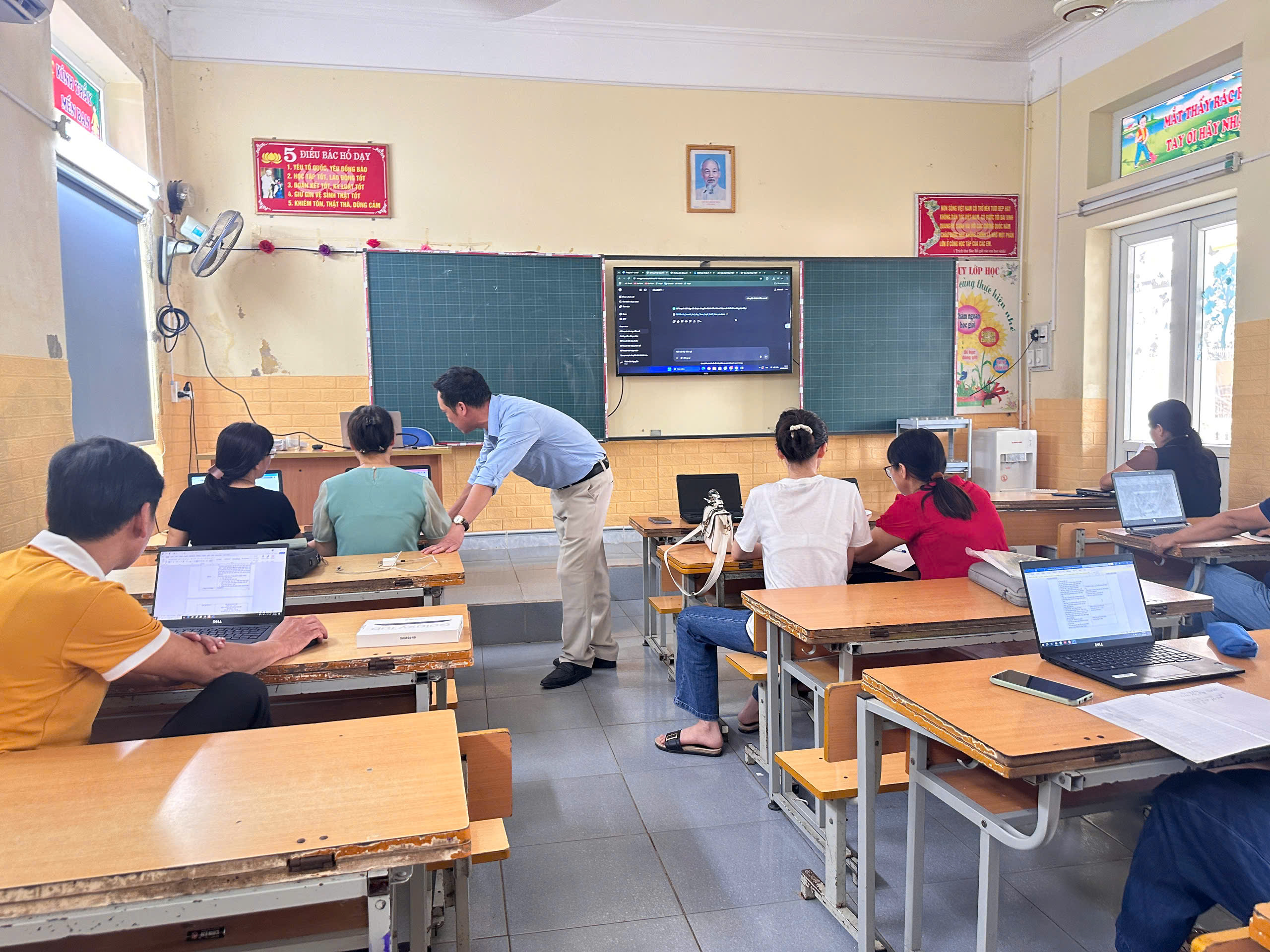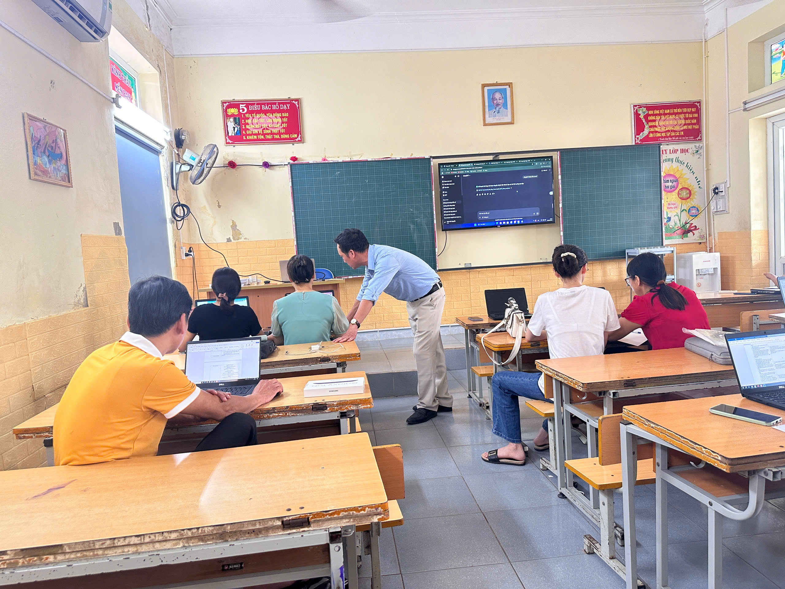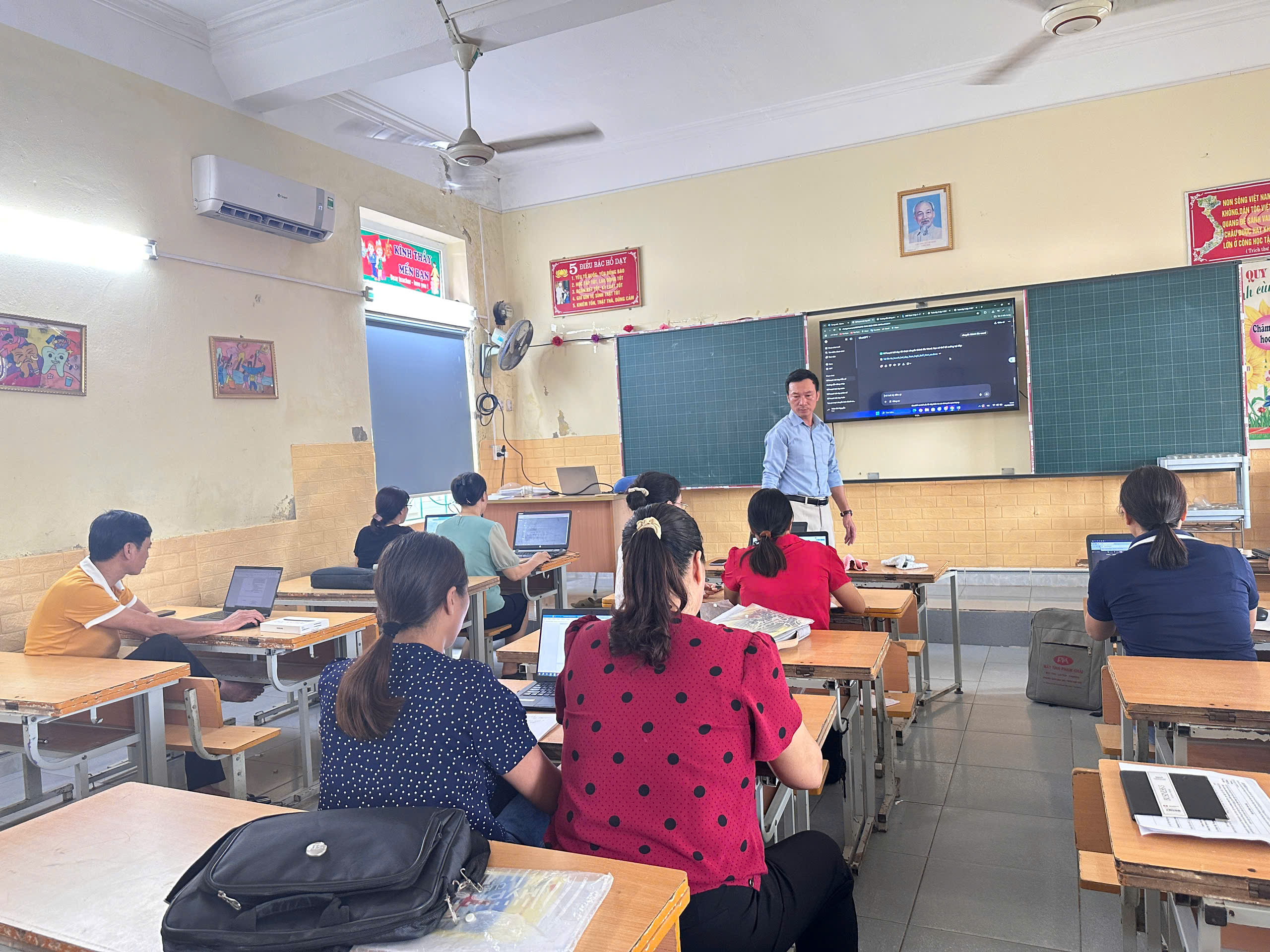 Không chỉ dừng lại ở lý thuyết, các buổi tập huấn được tổ chức đều đặn với tinh thần “học để thay đổi – dạy để truyền cảm hứng”. Từ việc tạo đề kiểm tra tự động, thiết kế bài giảng số, đến việc sử dụng trợ lý ảo để phản hồi học sinh cá nhân hoá hơn – mọi ứng dụng đều đang được khai thác từng bước vững chắc.